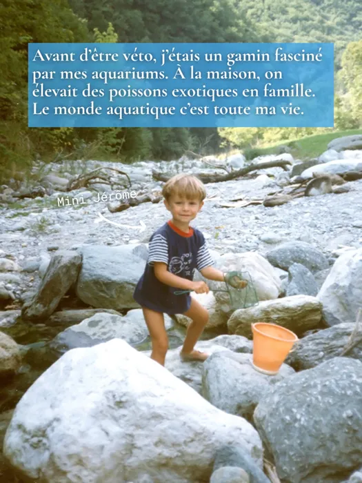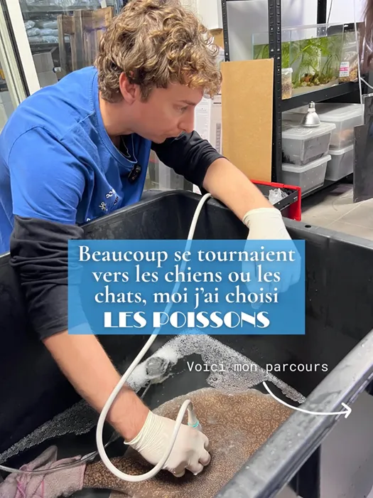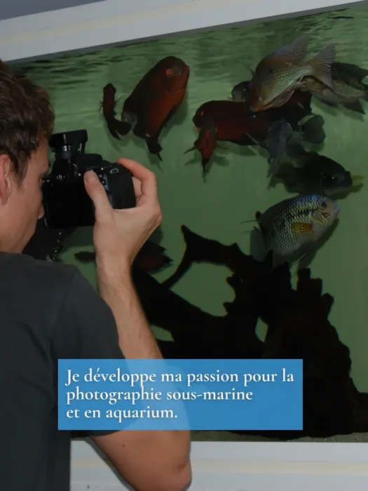 Il grandit entouré d’aquariums et participe depuis son plus jeune âge à l’entretien et l’élevage de multiples espèces de poissons au domicile familial.